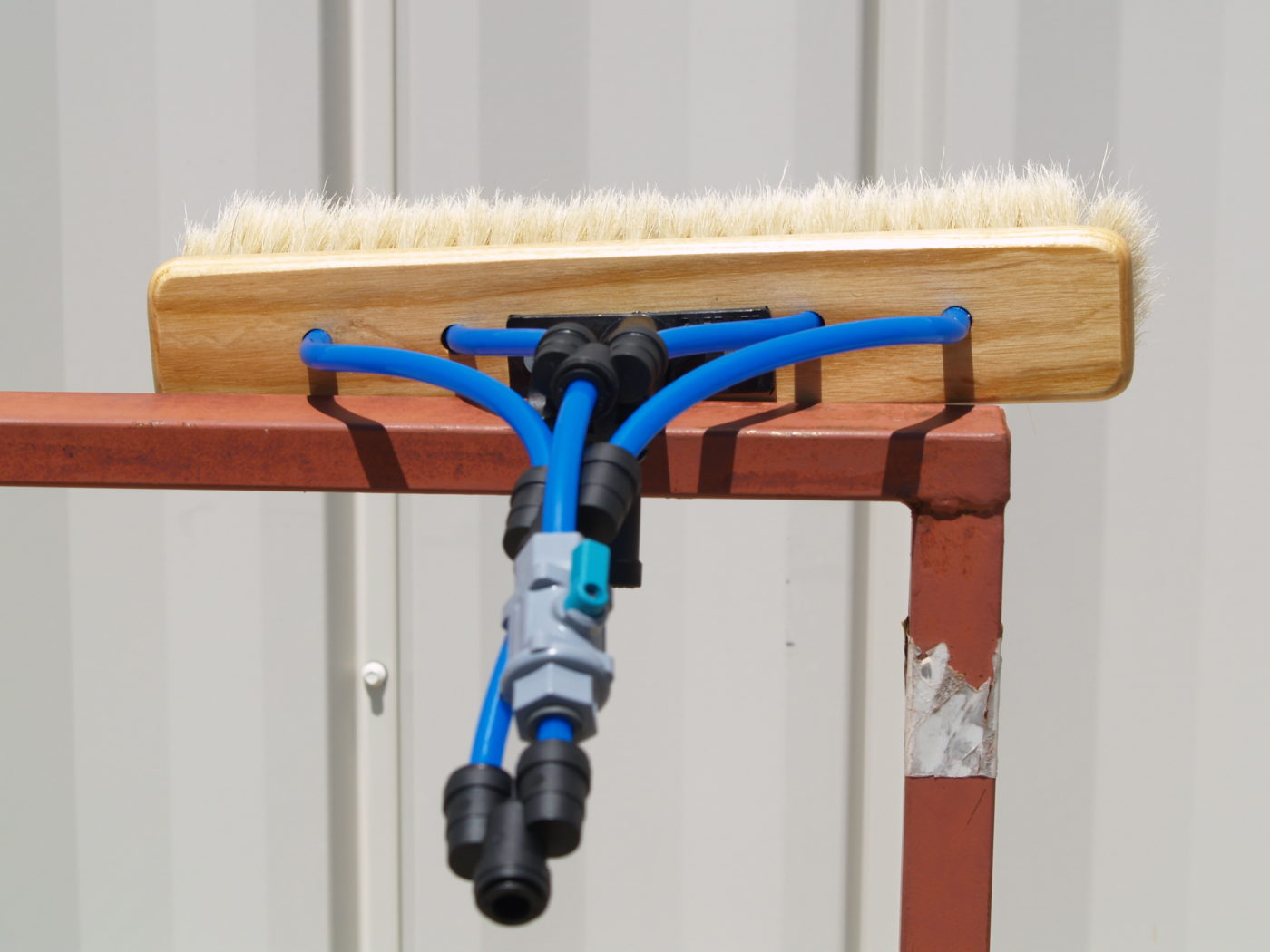 Our unique hog hair water fed brush is made to last years of regular professional window cleaning use. With our soft but aggressive bristles you can clean very dirty windows with ease and will not break and wear down like other boars hair brushes on the market. Our ash wood block is light weight and durable, it will hold up to heavy use and will not be effected by water.